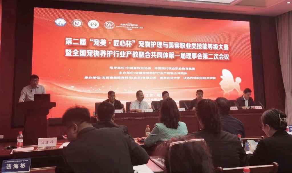 为培养高素质技术技能型人才,实现行企校共同育人,在中国畜牧业协会和中国现代农业职教集团的指导下,由名将宠美教育科技(北京)有限公司、江苏农林职业技术学院和南京农业大学共同发起全国宠物养护行业产教融合共同体。10月12日,第二届“宠美·匠心杯”宠物护理与美容职业类技能等级大赛暨全国宠物养护行业产教融合共同体第一届理事会第二次会议在江苏农林职业技术学院召开,动物科学学院教师龚旺参加会议。