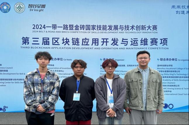 近日,在2024一带一路暨金砖国家技能发展与技术创新大赛之第三届区块链应用开发与运维赛项国内赛决赛中,信息工程学院派出的两支队伍表现出色,分别是由温继荣、夏奔老师指导的赖琨和李嵚,以及刘庭顺、夏奔老师指导的何乐锋和郝梦纯。凭借扎实的专业知识和出色的团队协作,经过两天的激烈角逐,我院团队最终在众多参赛队伍中脱颖而出,双双荣获三等奖。