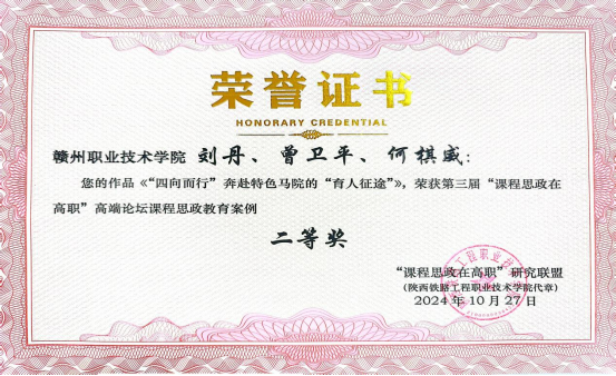 为深入学习贯彻习近平总书记关于学校思政课建设的重要指示精神和党的二十大及二十届三中全会精神和全国教育大会精神。近日,在陕西省渭南市举行的“课程思政在高职”研究联盟第三届“课程思政在高职”高端论坛上,来自全国各地的思政教育工作者齐聚一堂,共同探讨课程思政在高等职业教育中的创新与实践。经过评审,雷竞技官网提交的特色案例《“四向而行”奔赴特色马院的“育人征途”》脱颖而出,荣获本次论坛课程思政教育案例二等奖。雷竞技官网思政课教师代表刘丹作为获奖代表参会。