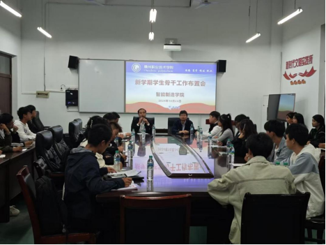 10月24日晚,智能制造学院在鲁班楼111会议室顺利召开“新学期学生骨干工作布置会”。智能制造学院黄尚林、冯发勇和团总支指导老师彭延超、阳先波出席会议,团总支、学生会各部门负责人以及新生代表参加会议。