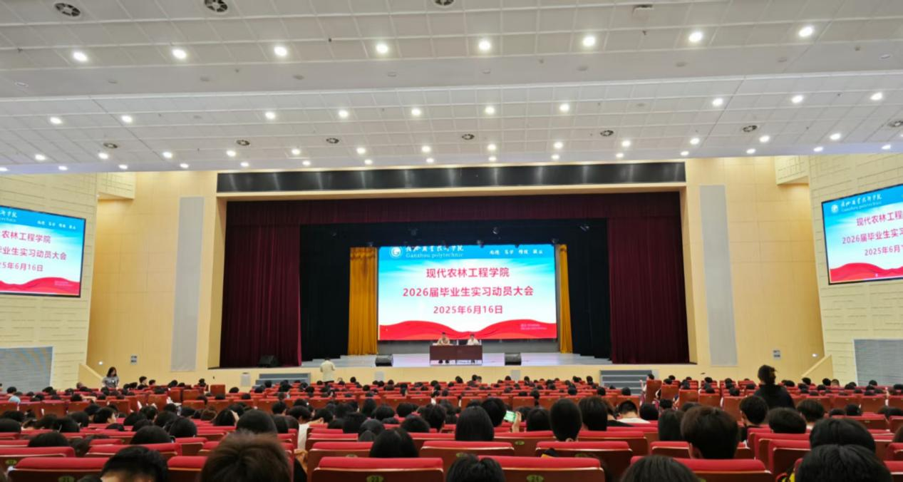 6月16日,现代农林工程学院在行知楼报告厅举办了第六期农林大讲坛暨2026届毕业生实习动员大会。旨在为即将步入实习阶段的学生提供指导,为未来就业打下坚实基础。学院党总支书记巫健主持会议,学院党总支书记副书记、副院长张红宇出席会议,学院各教研室主任、实习指导教师、全体辅导员及全体2026届毕业生参加会议。