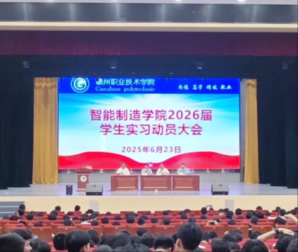 6月26日晚,智能制造学院2026届毕业生实习动员大会在行知楼一楼报告厅举行,智能制造学院领导班子、毕业班辅导员(班主任)、2026届毕业班全体学生共计900余人参加,大会由智能制造学院院长卢培文主持。