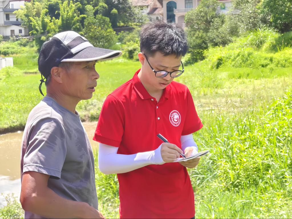 图为团队指导老师刘作桂向养殖户提出专业建议的场景。万昊供图