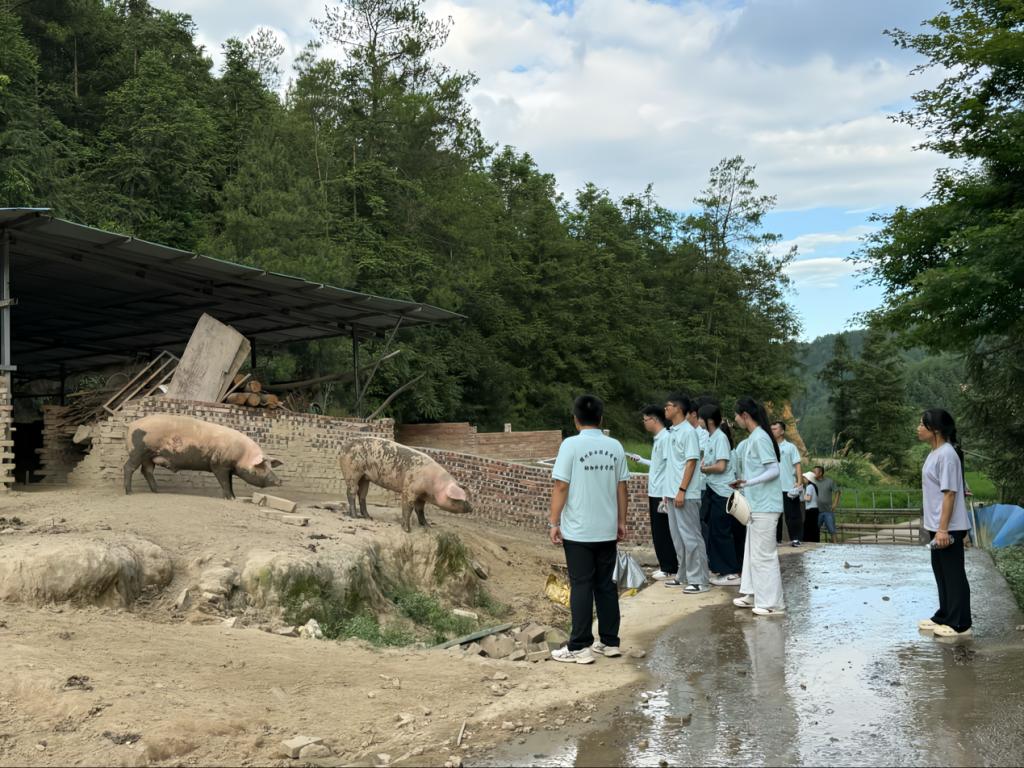 团队成员深入生产一线,先后走访了白鹤岭山庄及陈华生农场。在白鹤岭山庄,团队成员实地观察了山羊的饲养管理情况,并与负责人袁长美就创业经验和绿色生态养殖模式进行了深入交流。随后,团队成员在陈华生农场内细致了解了当地黄牛、跑山猪的特色养殖情况,亲身感受了乡村畜牧业的活力与挑战。