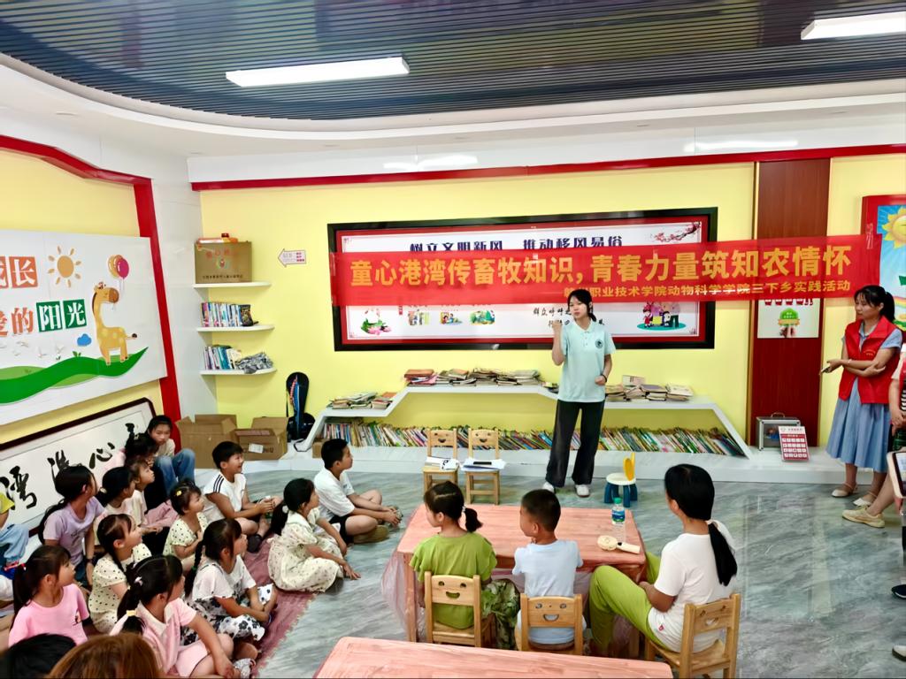 图为团队成员杨庆为留守儿童讲解畜牧知识的场景。万昊供图