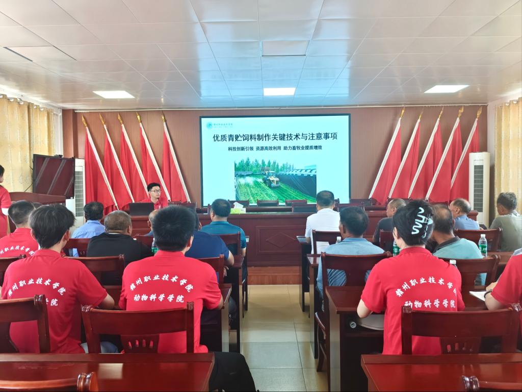 同时,为了更广泛地提升当地养殖户的技术水平,团队联合乡政府举办专场畜牧技术培训讲座,团队指导老师刘作桂主讲的《优质青贮饲料制作关键技术与注意事项》,详细传授青贮饲料制作、降低饲养成本的核心方法,助力养殖户“变废为宝”;团队指导老师潘子文的《畜禽热应激的综合预防与处理措施》专题分享,从环境调控、饲养管理等多维度,为养殖户提供清晰可操作的夏季高温防控方案。