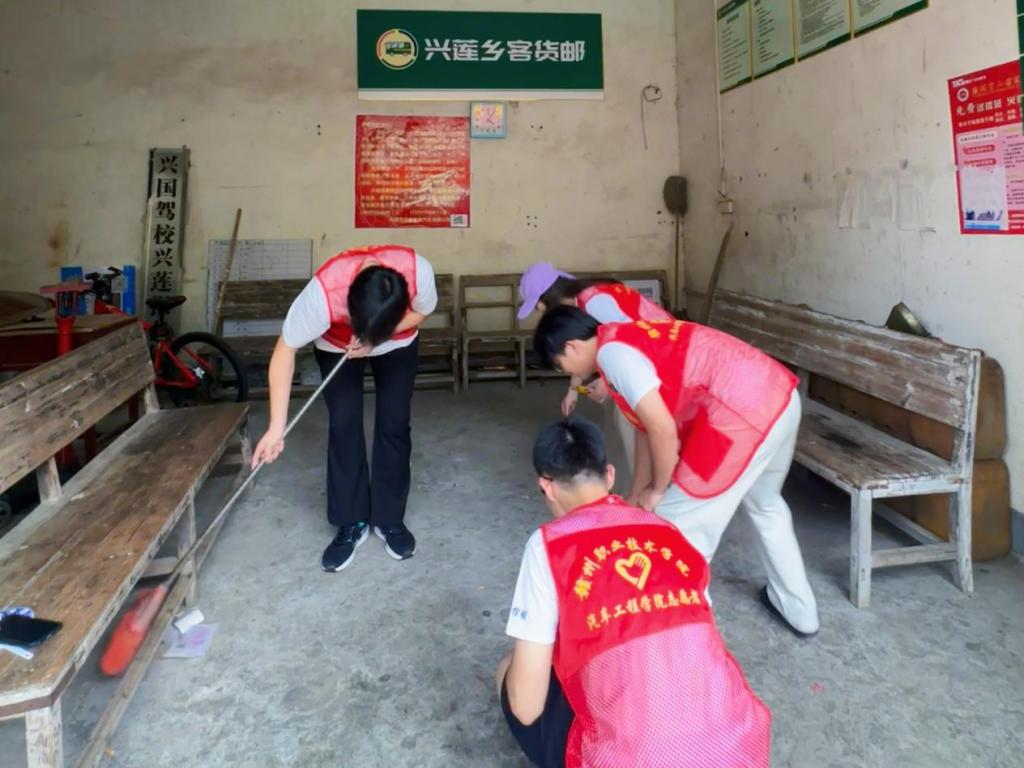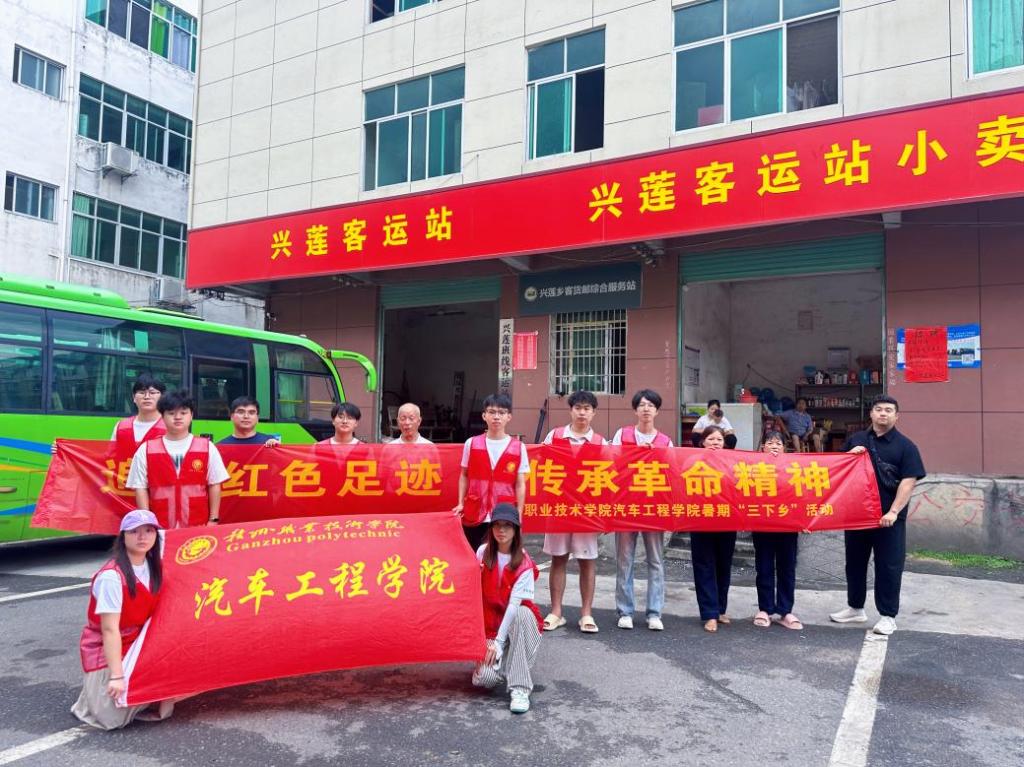为深入学习贯彻习近平新时代中国特色社会主义思想,引导青年学子在实践中传承红色基因、服务乡村振兴,7月13日,汽车工程学院暑期“三下乡”社会实践队走进江西省兴国县兴莲乡,在活动第一天以“追寻红色足迹,传承革命精神”为主题,在兴莲客运站及周边开展了一系列志愿服务活动,以实际行动助力乡村建设,展现新时代青年的责任与担当。