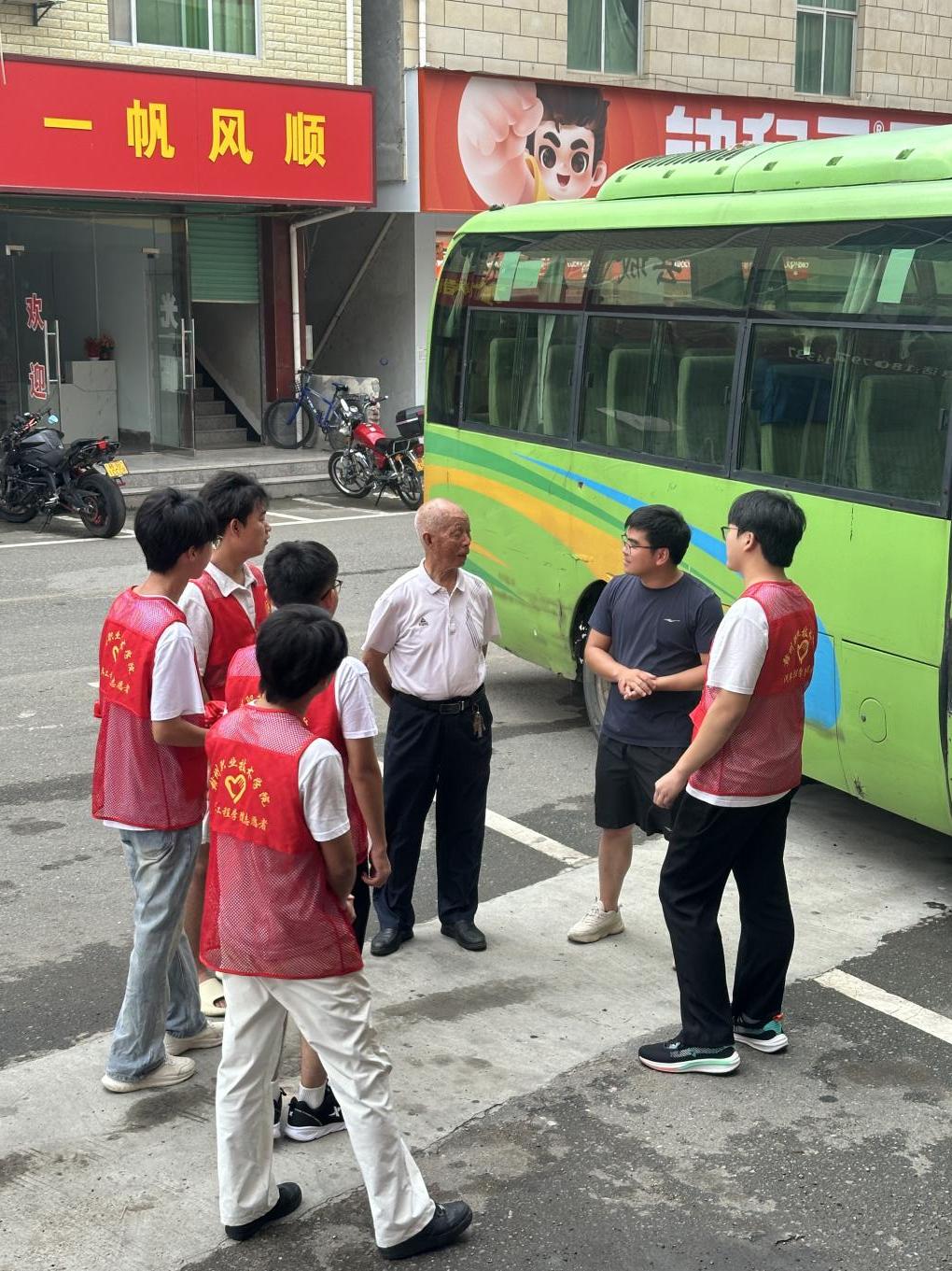 活动首日,实践队在兴莲客运站及周边区域开展了志愿服务活动。队员们不仅为当地村民提供了力所能及的帮助,还通过走访当地老人,深入了解了兴国县的革命历史。在兴莲客运站,队员们结识了94岁高龄的陈大爷,通过他的讲述,深刻感受到了客运站对于当地村民的重要性。这座承载着几十年风雨的客运站,不仅是兴莲乡连接县城的重要枢纽,更是乡村振兴的缩影。队员们在客运站及客货邮综合服务站开展了环境清洁与便民服务,用实际行动改善了村民的出行环境。
