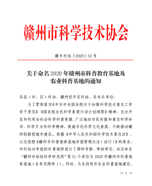 根据申报赣州市科普教育基地项目的要求,学院全力以赴、认真组织申报,经过市科协对申报的科普场所调研考察、审核审定,成功入选2020年赣州市科普教育基地。