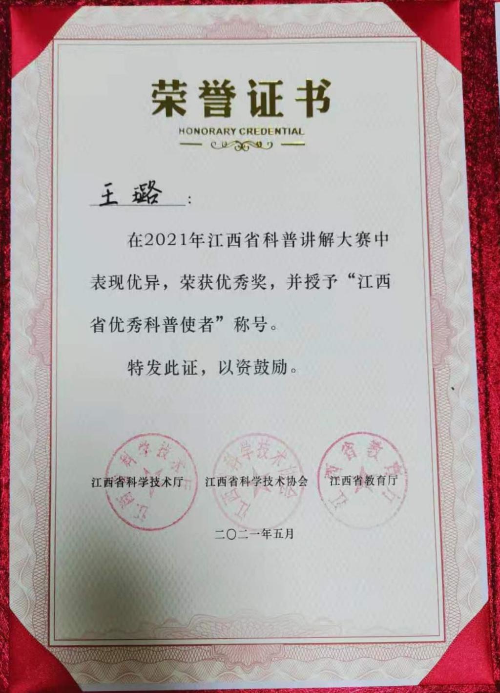 学院高度重视,精心组织,周密部署,经过自主命题讲解、科技常识问答等环节的激烈角逐,学院汽车工程系教师王璐获得“江西省优秀科普使者”称号。(撰稿:黄珍英;初审:陈曦 李明全;来源:科研处 汽车工程系)