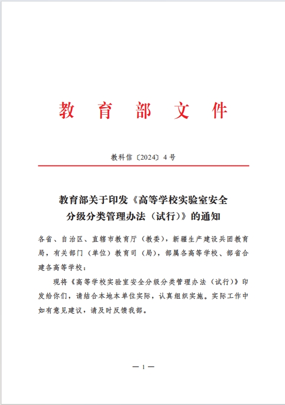 教育部关于印发《高等学校实验室安全分级分类管理办法 (试行)》的通知